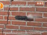 - De voegen met een slijpmachine tot op de helft van de voegdiepte uitslijpen; De maximale diepte bij een half-steens muur is ca 5 cm . Een steens dikke muur wordt ca 6-7 cm diep uitgeslepen. Resterende deeltjes en stof met water wegspoelen.